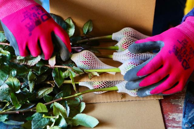 ▲品多多店铺精心包装鲜花,天冷时会用“保暖衣”精心包裹鲜花,让云南鲜花以最好的状态为国民消费带来春天。宋飞/摄