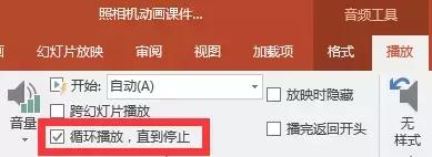 单击出现的[播放]选项卡,并选中[循环播放直到停止]。