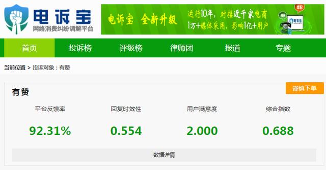 近日,知名网络消费纠纷调解平台“点女宝”(315.100EC.CN)接到用户投诉称,杭州有赞科技有限公司订购的产品无退款渠道