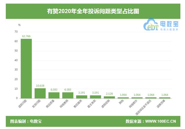 此外,“点女宝”接受用户维权的案例显示,“有赞”涉嫌存在退款、发货、产品质量、网络销售、售后服务、霸王条款、虚假宣传等问题。