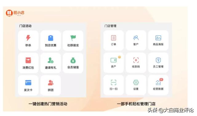 据悉,王小店是针对小微店铺商家的店铺活动工具。通过王小店,店主可以快速打造营销活动,通过社区独处、秒杀、到店优惠、会员储值等方式快速获取客流和订单。同时还可以直接在手机上管理订单、资产、客户。自2021年4月上线以来,王小店已覆盖金华、芜湖、呼和浩特、延吉、海口、昆明等40多个城市,帮助轻茶、鲜果、母婴用品、零食便利等20多个行业的中小门店快速提升客流和销售额。