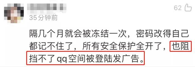 QQ账号这次被冻结,网友发布的多张截图显示,来自QQ 空。