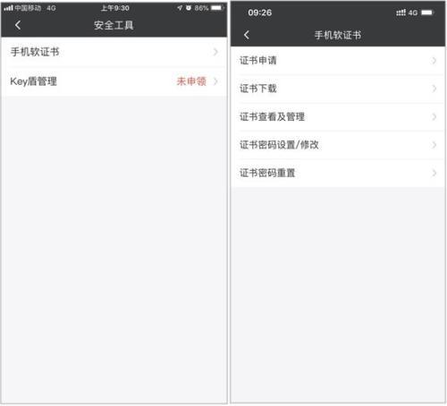 1。打开广发银行手机银行APP,选择“我的-安全设置-安全工具-手机软证书”,下拉至“手机软证书”页面申请下载证书;