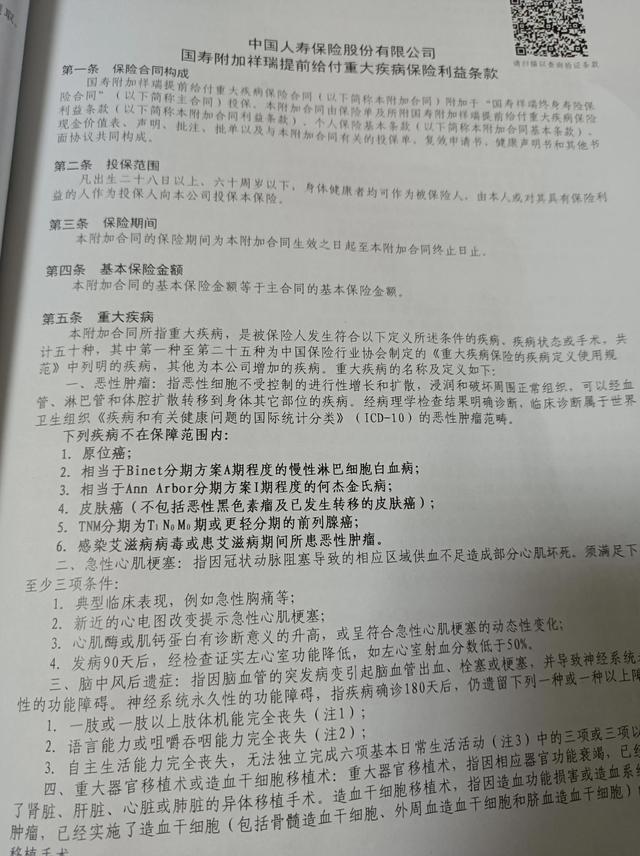 2017年,老婆在亲戚的推荐下买了人寿保险,交了5种保险,20年,年缴6000元。仔细看了条款,疾病保险有几十种。怎么感觉保单不是常见病,疾病的规定在报销前详细到了某种极端的程度?我感觉入坑了。你怎么想呢??欢迎评论。