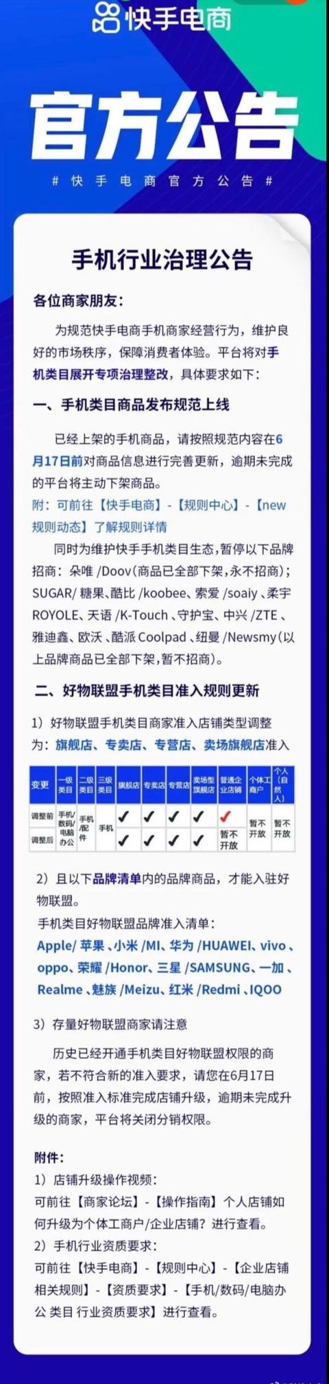 此外,为了维护手机品类的生态,Aauto Quicker公布了12个被下架并暂停投资的品牌:维多/Doov、糖/ Candy、酷比/koobee、索爱/Soay、玉柔ROYOLE、天语/K-Touch、卫士宝、中兴/中兴、雅迪新、欧沃、酷派、纽曼/。