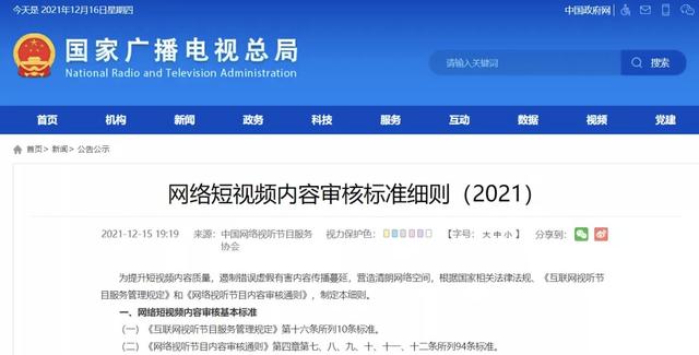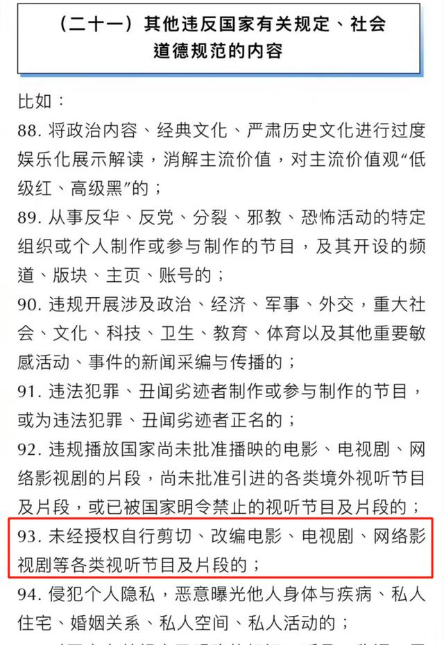 12月15日,中国网络视听节目服务协会发布《网络短视频内容审核标准细则(2021)》,涵盖21大类100项规范。其中,第93条尤为引人注目:
