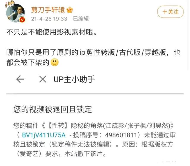 这也是继今年4月70余位影视版权人、500余位艺人发表声明抵制影视作品短视频未经授权剪辑和传播后,再次受到打击的第二次影视内容创作。