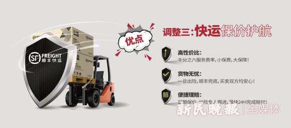 第三个调整是高性价比的快递保价方案。顺丰提供的投保方案,只需要千分之六的服务费率。出险过程中,顺丰会兜底,会有专人跟进,赔偿等保障最快24小时内完成。
