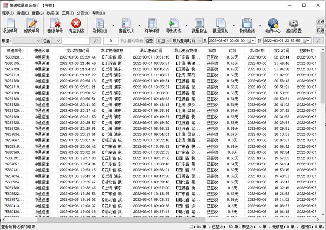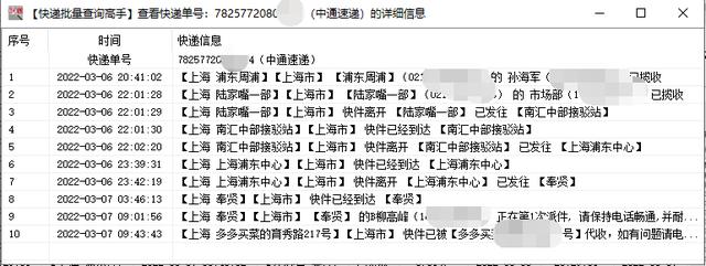 导入查询后可以看到每个快递单号的物流信息,查询速度很快。