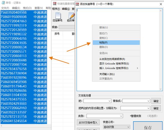 进入软件,导入单据号的方法有很多,比如直接从单据中复制粘贴,拖入。