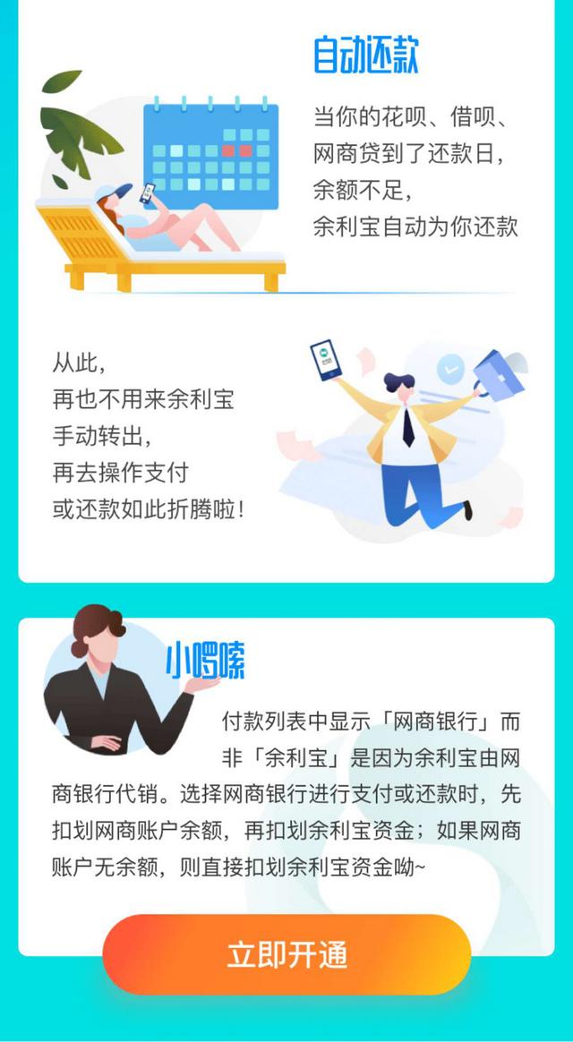 成功开通该功能后,当您在日常消费时,余鲍莉也可以像余额宝一样成为您的钱包,直接用于消费和支付。而且,如果余额不足,余会自动替你还钱,你也不用再折腾了,有钱用了。
