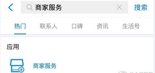 打开支付宝,在搜索框输入“商家服务”,点击标签。