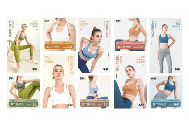 纯粹的自我是gigt女装运动装所表达的核心态度。在整体形象设计中,多元化、自由的字体设计,可以让“真实的自己”这个词更具视觉捕捉性。配合优雅知性的色系,女性柔美坚定的性格会得到“肯定”。