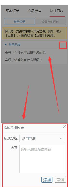 点击右侧如下:快速回复标签页,打开如下界面。根据提示,可以看到两个选项卡:常用短语和设置自动回复。您可以单击其中一个来查看并根据需要进行设置。
