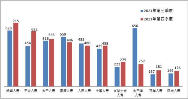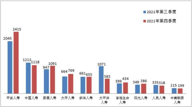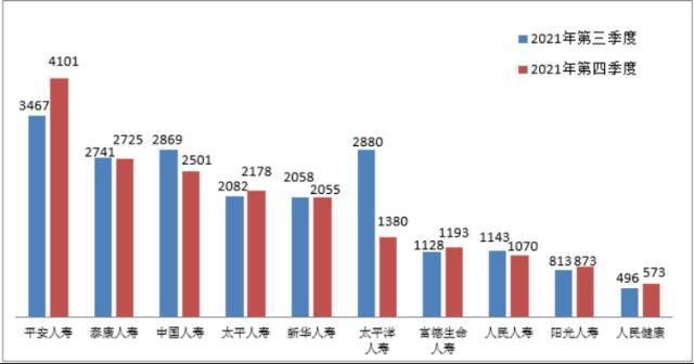 2。梅辛相互人寿和爱生人寿万单投诉量位居寿险公司前两位。2021年第四季度,寿险公司每万份保单的投诉量中位数为0.26/万。其中,万份保单投诉量前10名分别是:梅辛相互人寿1.35件/万份;热爱生活1.08件/万件;中韩人寿0.96件/万件;合众人寿0.95件/万件;国联人寿0.94件/万件;富德生命人寿0.80块/万块;陆家嘴国泰人寿0.80件/万件;长寿0.72件/万件;北大方正人寿0.70块/万块;英国人寿0.67件/万件。