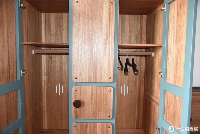 衣柜内部布局简单,没有什么花里胡哨的腰带、领带、饰品之类的设计,但是可以装,实用。