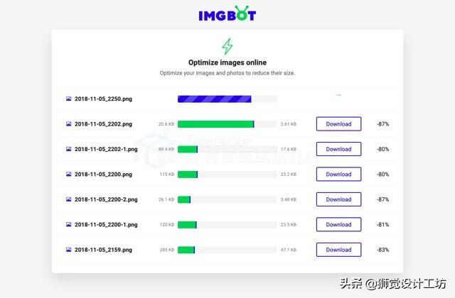 Imgbot图像压缩效果非常强大。我测试了几个压缩效果超过60%的电脑截图。网站会提示每张图片压缩前后的大小和百分比。