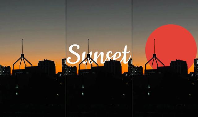 当然也不一定是把遮挡的部分都擦掉才好看。比如完整保留“夕阳”的最后一个字母,可以创建一个“画笔”图层,再加上几只飞鸟,可能会带来意想不到的效果。