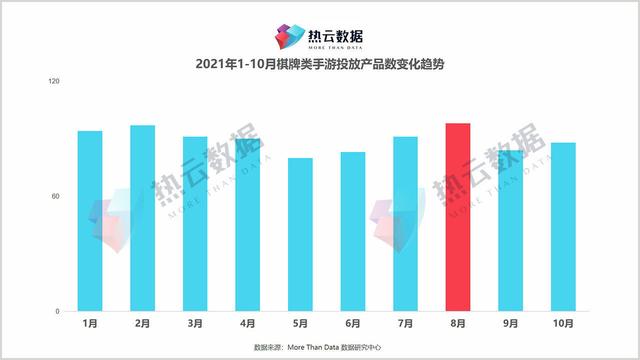 据热云数据近日发布的《2021年Q3手游购买报告》显示,今年Q3在创作群体数量和Top50类型分布上有了很大的变化。与去年榜单的11个类别不同,今年的50强类别更加集中,有8个类别。其中,放置游戏、MMO、射击和塔防都退出了Top50,而棋牌则异军突起。热云数据对比C.A.S广告素材智能分析系统中的棋牌购买数据。按照过去几年的购买规律,棋牌手游在春节前后的广告投放会大幅增加,今年也抓住了暑期上线的机会,进行了大规模的购买。值得注意的是,今年8月,棋牌手游推出的产品数量甚至比2月还略高。