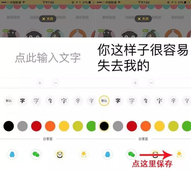 表情做好之后导入微信有三个选项——微信表情、微信渣图、微信原图。让我们看看有什么不同。