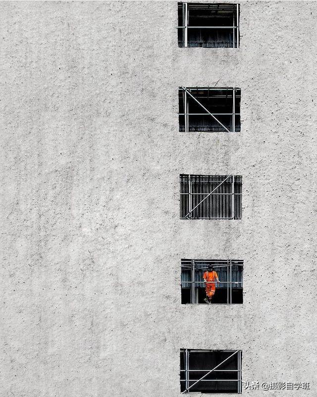 规整的建筑,有节奏的光影,感兴趣的人出现,活跃了整个画面。