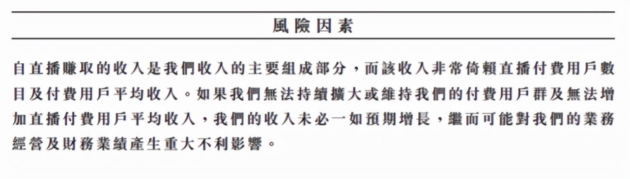 在招股书中,Aauto Quicker表示“未能开发新的广告形式来吸引用户和广告商”。同时,在风险因素中,直言不讳地说,如果直播的付费用户及其平均收入不能增长,可能会对公司的业务经营和财务业绩产生不利影响。
