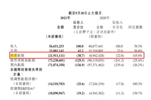 前三季度,公司营业亏损219.11亿元,比去年同期大幅增长145%。