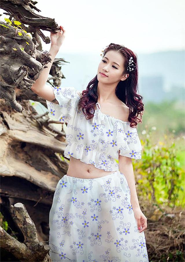 6.局部选取衣服褶皱的图案,用图章或变形工具适当调整图案,使其与褶皱相匹配,会使其看起来更加逼真、立体。