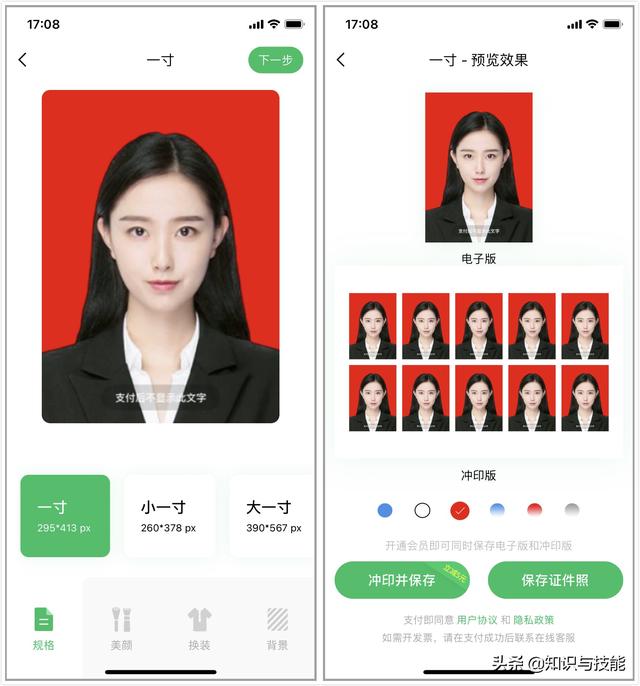 如果需要,还可以修改证件照的大小、美颜、衣服,设置好之后点击【下一步】导出。