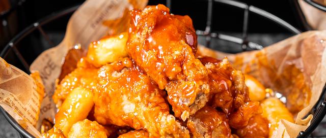 睡前按配方腌制鸡肉,冷藏过夜,早上醒来后加入自制酪乳腌制8小时。准备晚餐的时候,裹上外套,放锅里炸,会脆嫩到爆汁!