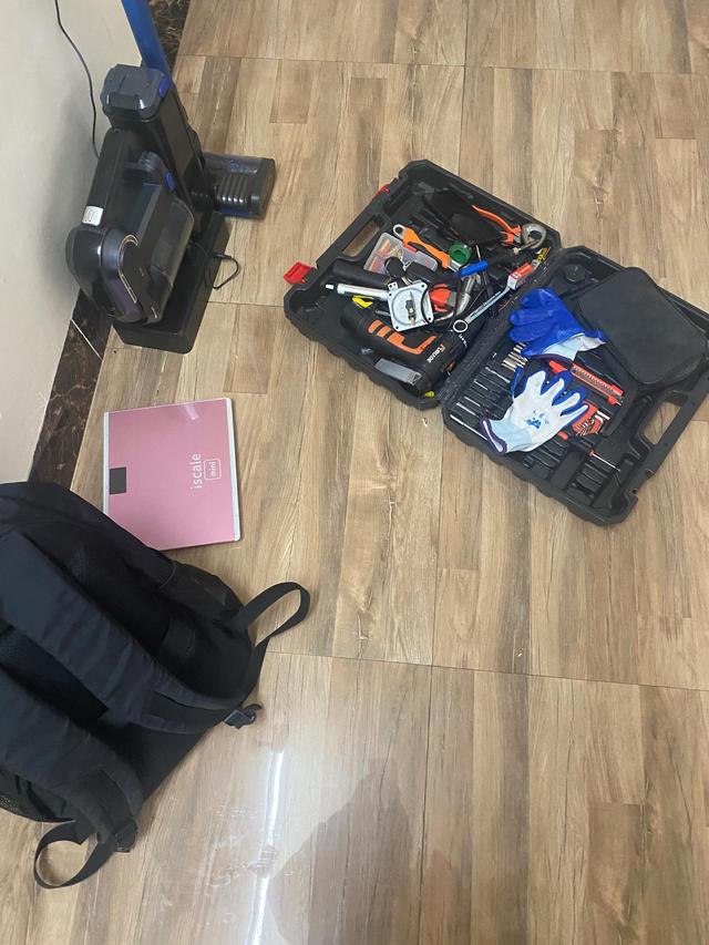 然后我跟他说哪个热水器坏了,他就拆开了,拿出仪器来检测。