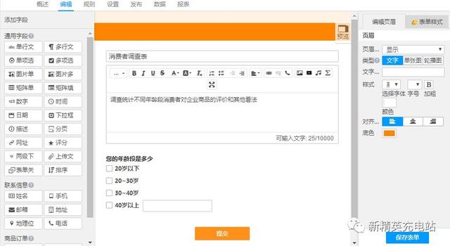 黄金数据提供了各种分类在线表格。只需选择符合要求的表单,预览表单、数据、报表,点击选择,即可根据所选模板成功创建问卷。下图显示了粉丝反馈表单模板。