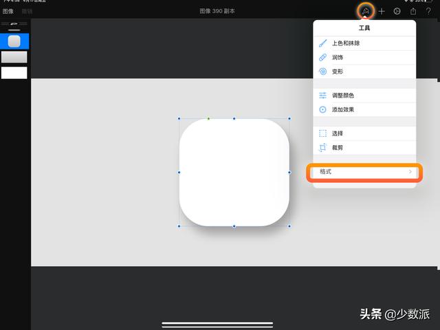 将原始素材导入Pixelmator,添加一个“盒子”形状图层,放大覆盖整张图片。