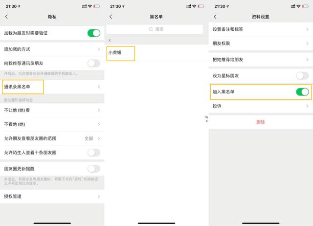 至于黑,可以从黑名单中移除。只要他没发现,你还是可以悄悄加他回去的。