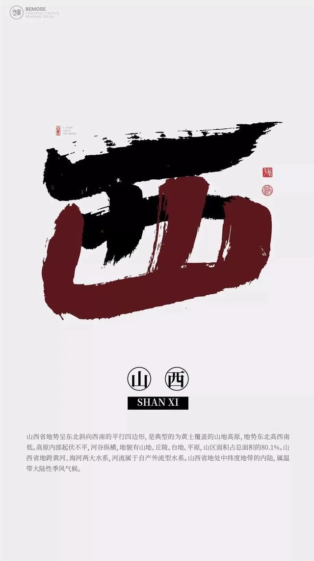 同样的,设计师@黄陵叶赫用灵动漂亮的书法写出了中国34个省市的名字,每个省的名字都被巧妙地融合成一个字。