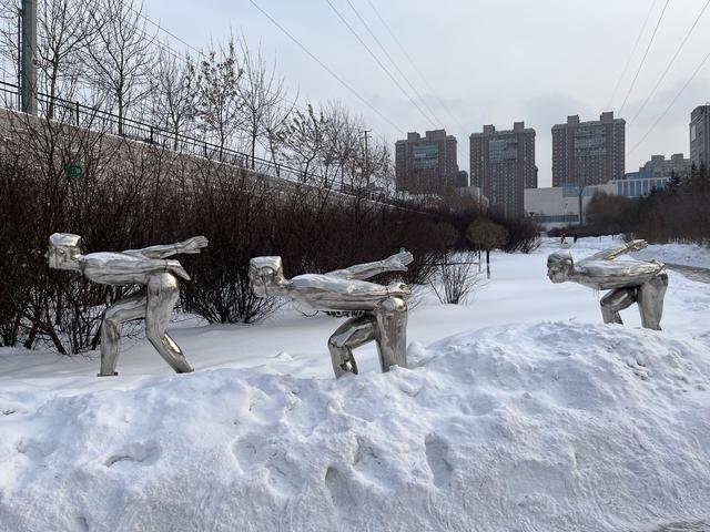 七台河市学府街清峪公园不大,长537米,宽22.2米。公园就在体育中心旁边,步行去溜冰场只要两三分钟。雪地里,公园里一组三个人的雕像很显眼:穿着溜冰鞋,弯腰看着溜冰场。当地穗哥说,公园是为了纪念孟庆余而建的。