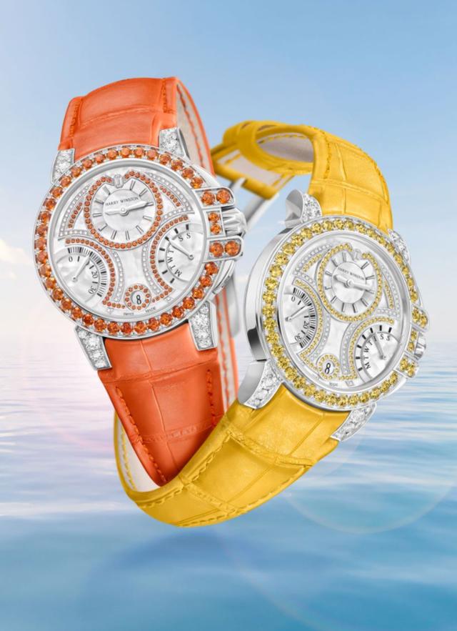 融合了珠宝魅力和运动风格的海瑞·温斯顿海洋系列,带来了全新设计的腕表,拥有黄色蓝宝石和橙色石榴石两种充满活力的配色,以及浓郁的夏日气息。海瑞·温斯顿品牌标志性的宝石镶嵌工艺搭配璀璨的珍珠母贝表盘,全新海洋系列双弹跳36mm腕表完美诠释当代风格的奢华格调,洋溢着欢快的气息。