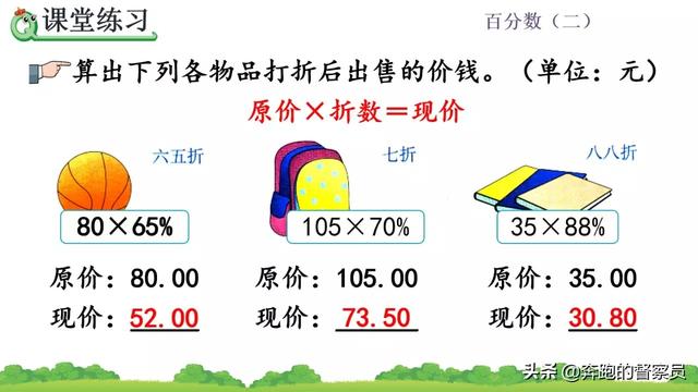 除了结合10%的实际应用问题和解决方法,我们还要记住,商品的折扣或者折扣解决的问题都是以原价为基础的,所以说到这类问题,第一个单位就是商品的原价,就是提醒大家注意。