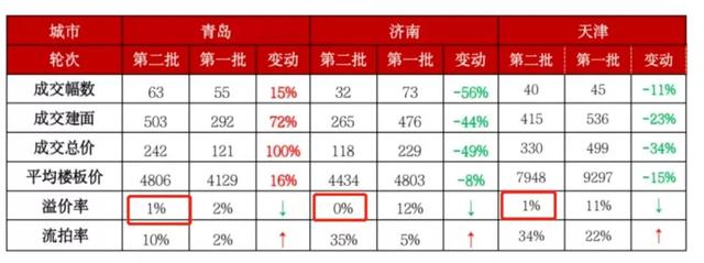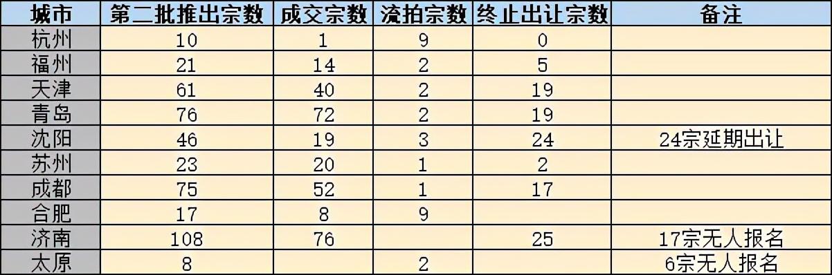 从已完成第二轮集中供地的城市来看,10个城市约有149宗土地流拍。根据郭进证券的研究报告,福州、青岛、济南和天津第二次土地供应的拍卖率分别为32%、10%、35%和34%。