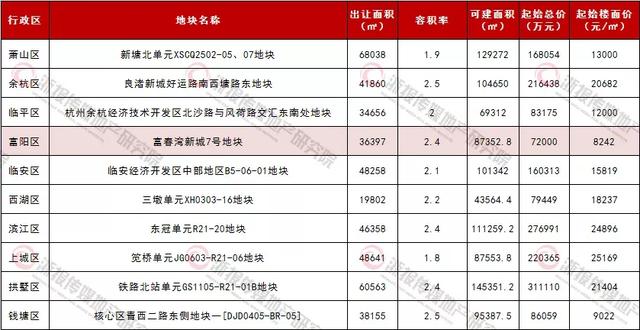 如余杭区良渚新城郝云路南西塘路东地块,起价20682元/平方米,公租房10%。