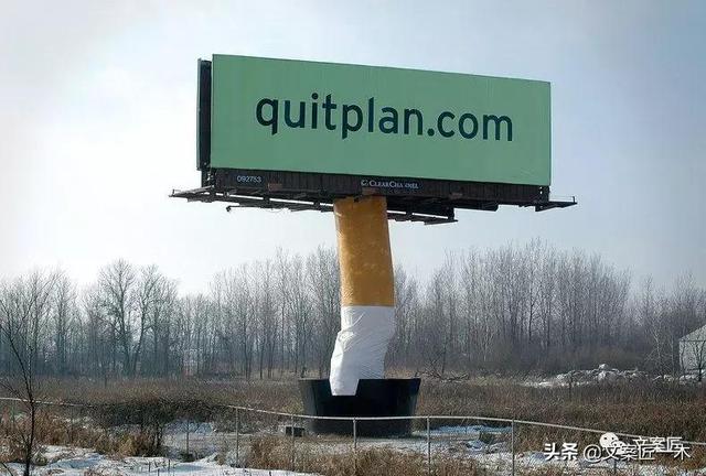 利用支柱形成创意广告。压碎这个巨型烟头的是这个网站的广告牌,网站戒烟主题明确。