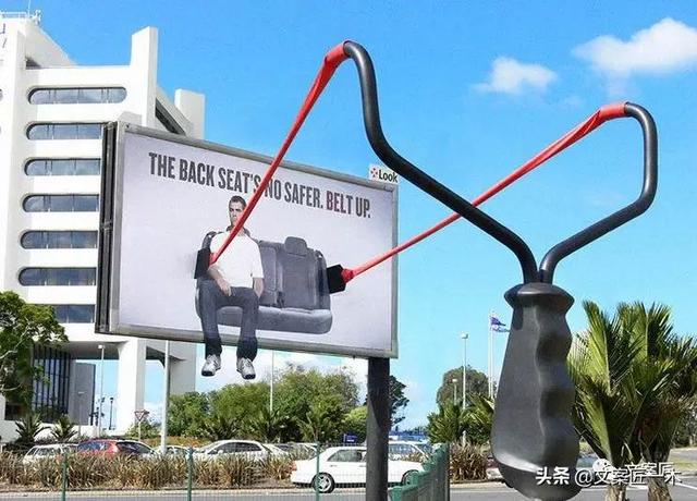这是一个非常生动的广告。如果你不系好安全带,后座就不安全。一旦发生意外,你会像弹弓上的子弹一样被迅速弹射出去。