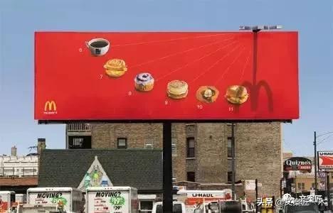 在楼顶设一个时钟,每小时在数字上放一个麦当劳的食物。当时这个广告达到了最好的宣传效果。