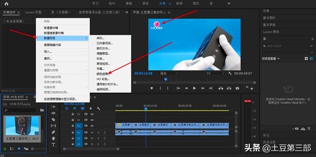 第二种方法是掩蔽。单击资源窗口右下角的新项目,并选择颜色蒙版。颜色是黑色的。拖到序列时间线的上一层。控件,单击缩放高度,然后移动位置以覆盖水印。为了美观,我们还在底部加了同色系的面膜。其实这种方法和第一种方法差不多。