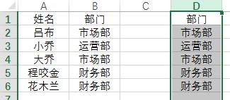 在Excel的左表中存储员工部门信息,现在列出公司独立部门的名称,如右图所示。
