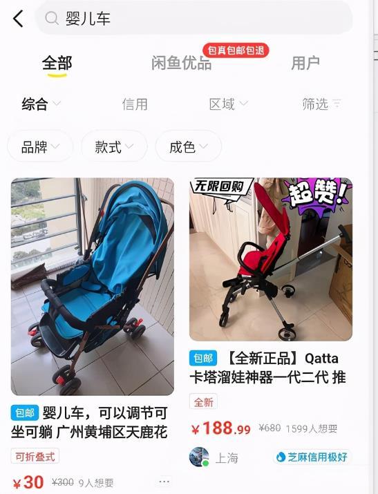 这是闲鱼搜索婴儿车的结果。