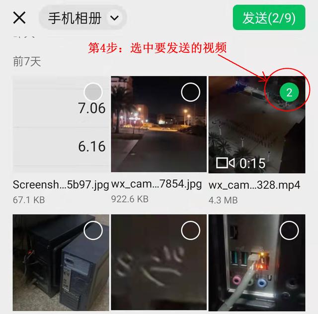 第三步:选择要发送的视频文件,点击左上角的发送按钮。