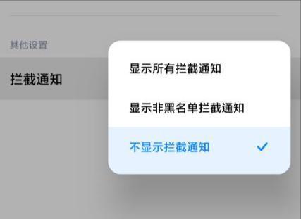 第五步。最后回到骚扰拦截设置,选择拦截通知中不显示拦截通知。