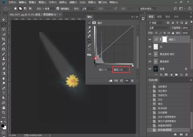 打开PS,插入材质,新建一层,命名为黑色渐变,图层混合模式设置为正片叠加。
