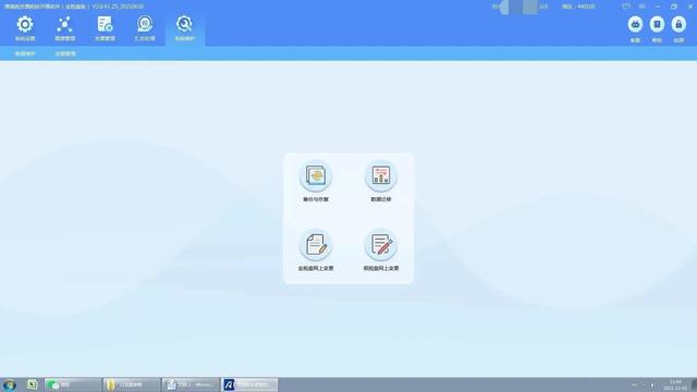 系统维护界面的主要功能包括:备份恢复、数据迁移、网上变更纳税申报、网上变更纳税申报。